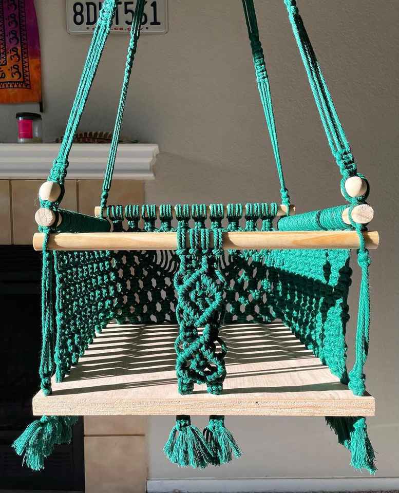 Green Macrame Hammock Swing Boho Hanging Chair for Garden Patio Bedroom Park Outdoor Furniture Relieving Seating