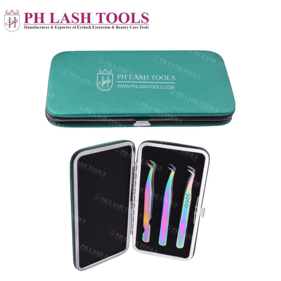 Green Magnetic Case/Kit Holding For 3 Eyelash Extension Tweezers, New Arrivals Eyelash Extension Tweezers Private Label