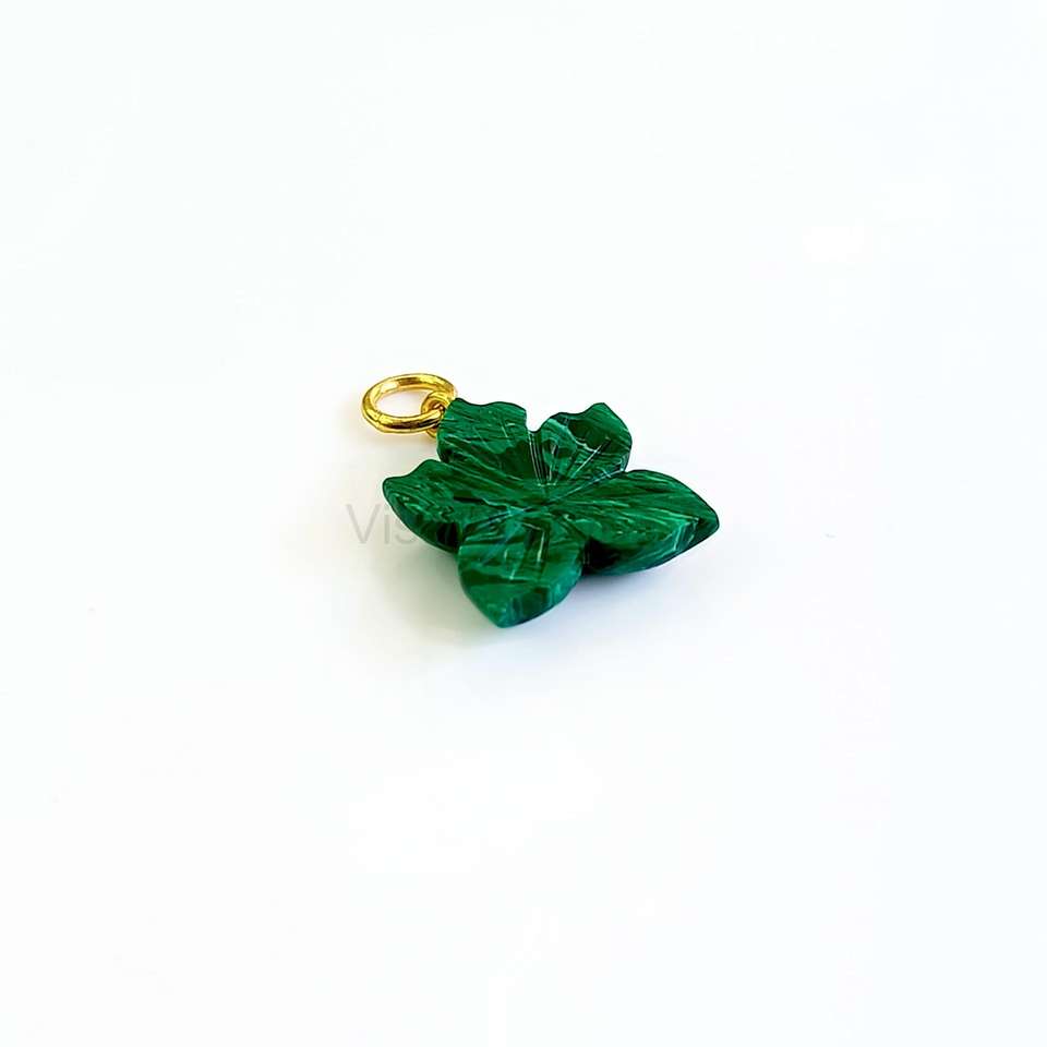 Green Malachite Flower Shape Hand Carved Gemstones 20mm Gold Plated 925 Sterling Silver Charms Fine Jewelry For Women In Bulk