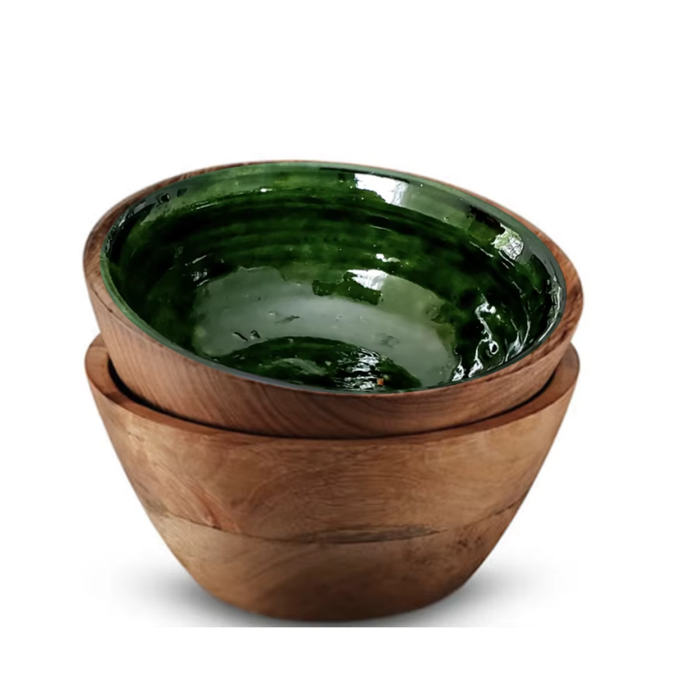 Green Mango Wood Bowl 27cm X 11cm Eco-Friendly Lightweight Dishwasher Safe for Business Gifts