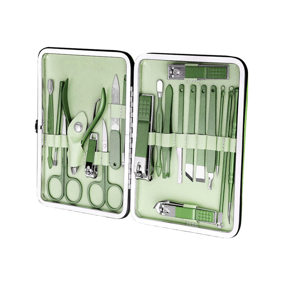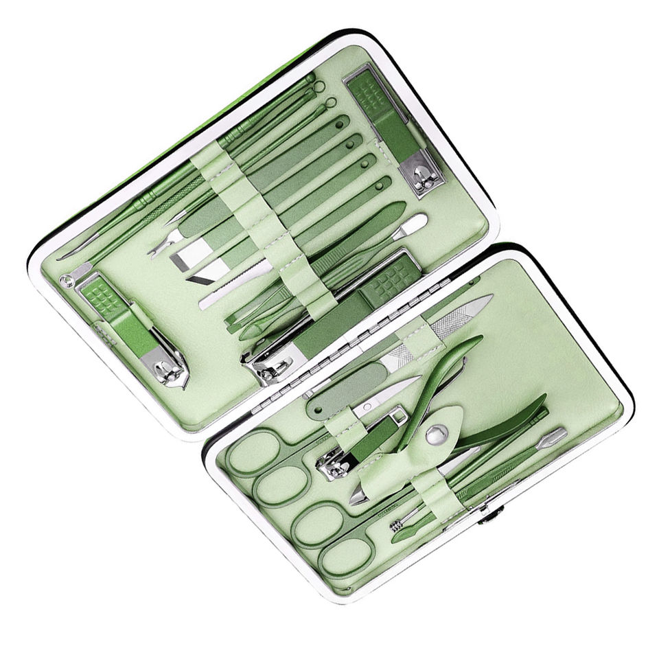 Green Manicure and Pedicure Kit 20-Piece Stainless Steel High Carbon Nails Includes 4-in-1 Nail Clipper