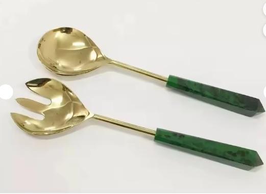 Green Metal Beads Handle Gold Plated Eco-Friendly Dishwasher Safe Salad Serving Sets Tableware Shiny Finished Salad Server