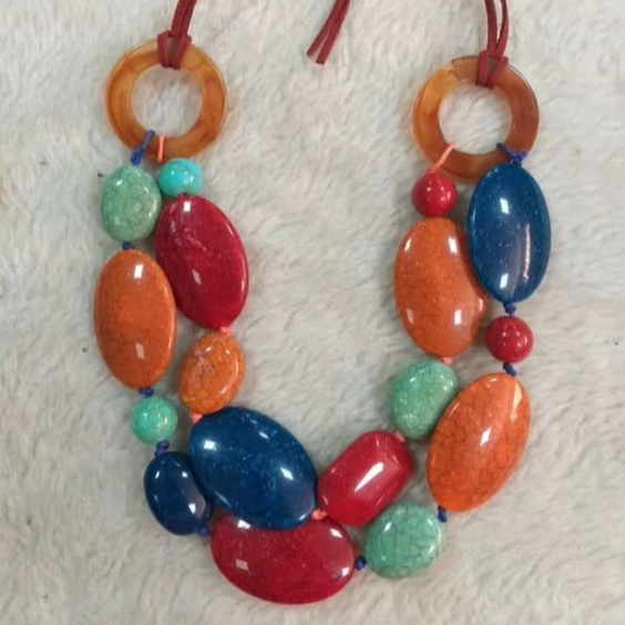 Trendy Women's Fashion Green Mixed Color Resin Multi-Layer Pendant Necklace Beads Chain Type Wedding Jewelry
