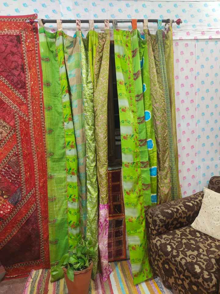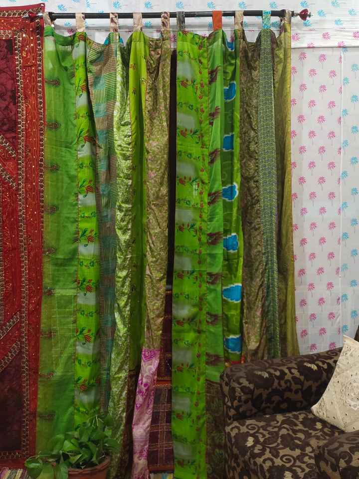 Green Modern Patterned Sheer Curtains Unique Sari Window Treatments for Bedroom Living Room Dining Room Hotel Light-Filtering
