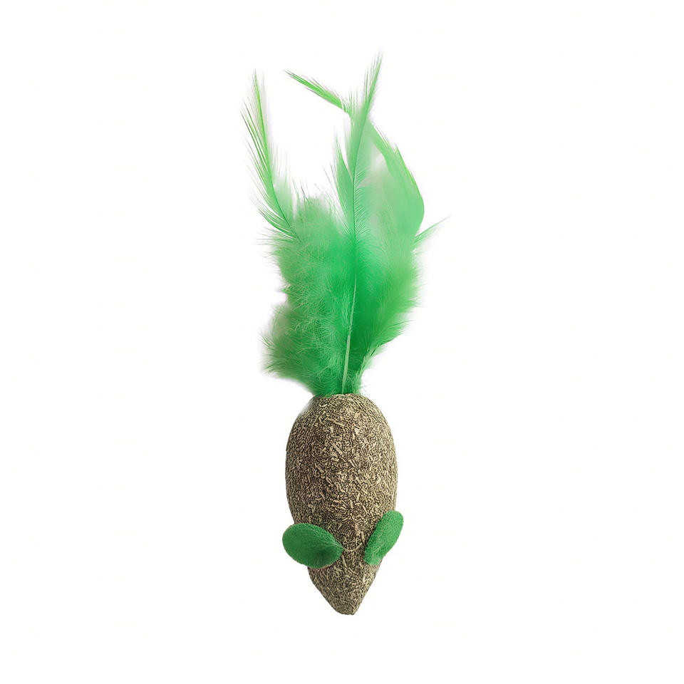 Green Mouse Cat Toy With Catnip Feather Teaser For Cats Chew Toys Pet Supplies