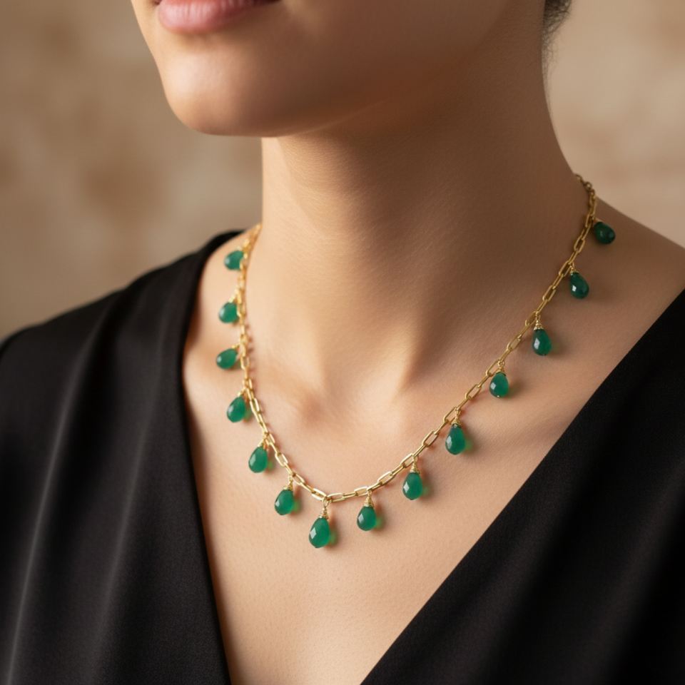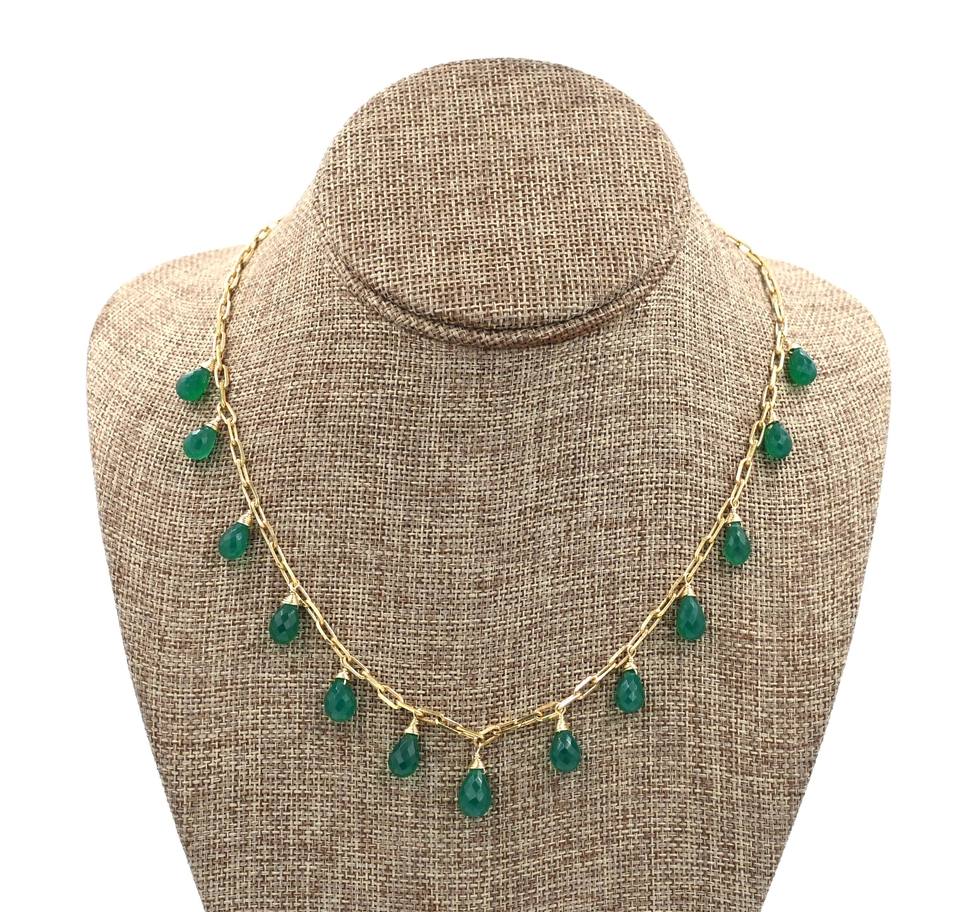 Green Onyx Drop Shape 925 Sterling Silver Gold Plated Necklace Adjustable Handmade Jewelry Making Engagement Wedding Party