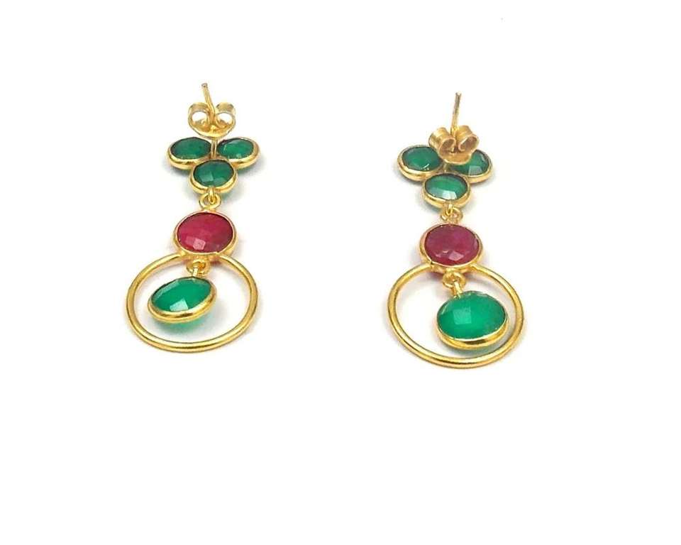 Product Name:Dyed Ruby And Green Onyx Gemstone Gold Plated Handmade Stud Earrings