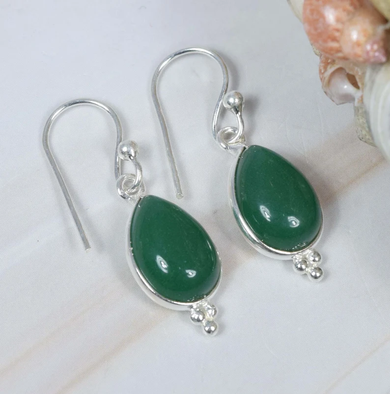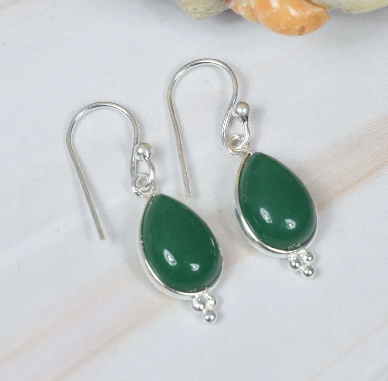 Green Onyx Earrings 925 Sterling Silver Gemstone 1 Pair Hook Earrings Handmade Jewelry Pear Shape Jewelry Gift for Christmas