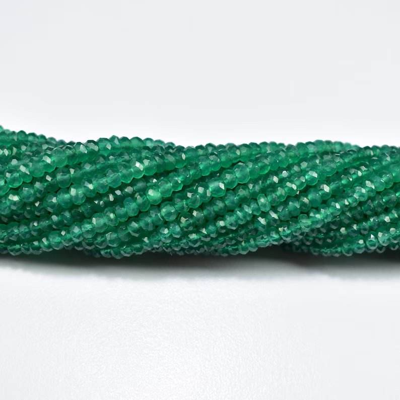 Green Onyx Faceted Rondelle Beads for Jewelry Making 3.5-5mm Manufacturer Natural Green Onyx Beads Gemstone 13 Inches