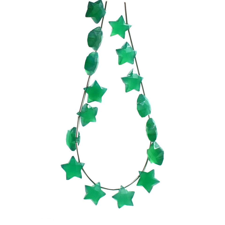 Green Onyx Faceted Star Shape 10-11MM Stone Beads 16 Strand Jaipur Gem Factory IGI Certified For Jewellery Making