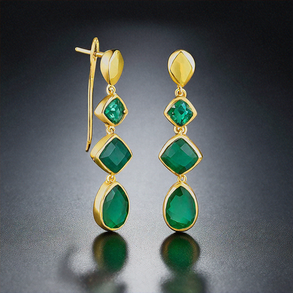Green Onyx Fancy Shape Green Gemstone Onyx Gemstone 925 Sterling Silver Earring for Women & Girl