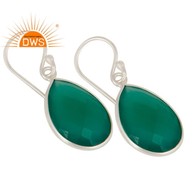 Green Onyx Gemstone Earring Pear Drop Designer Sterling Silver Earrings Manufacturer Jewelry