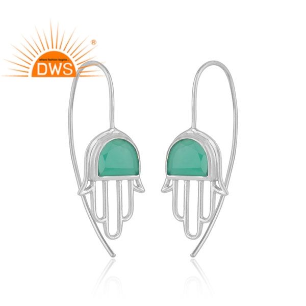 Green Onyx Gemstone Earrings Hamsa Designer 925 Sterling Silver Long Hook Earrings Jewelry Wholesale Classic Collection