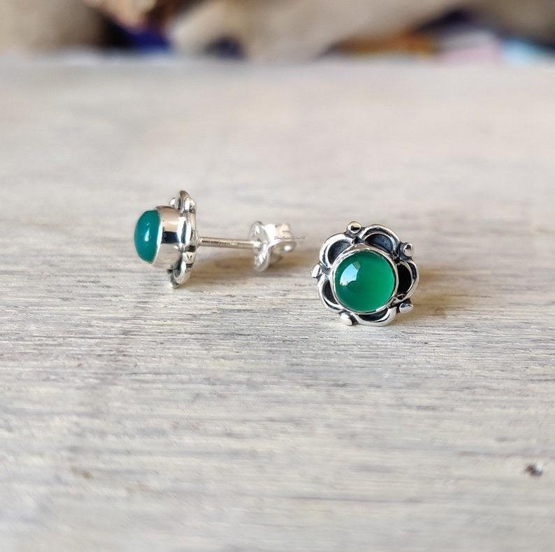 Green Onyx Gemstone Stud Earrings Jewelry For Women Silver Boho Style Jewelry 925 Sterling Silver Trending Handmade Earrings