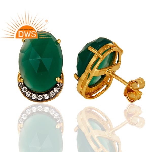 Green Onyx Gemstone Zircon Set Earrings Indian Gold Vermeil Jewelry Designer Sterling Silver Stud Earrings Wholesale