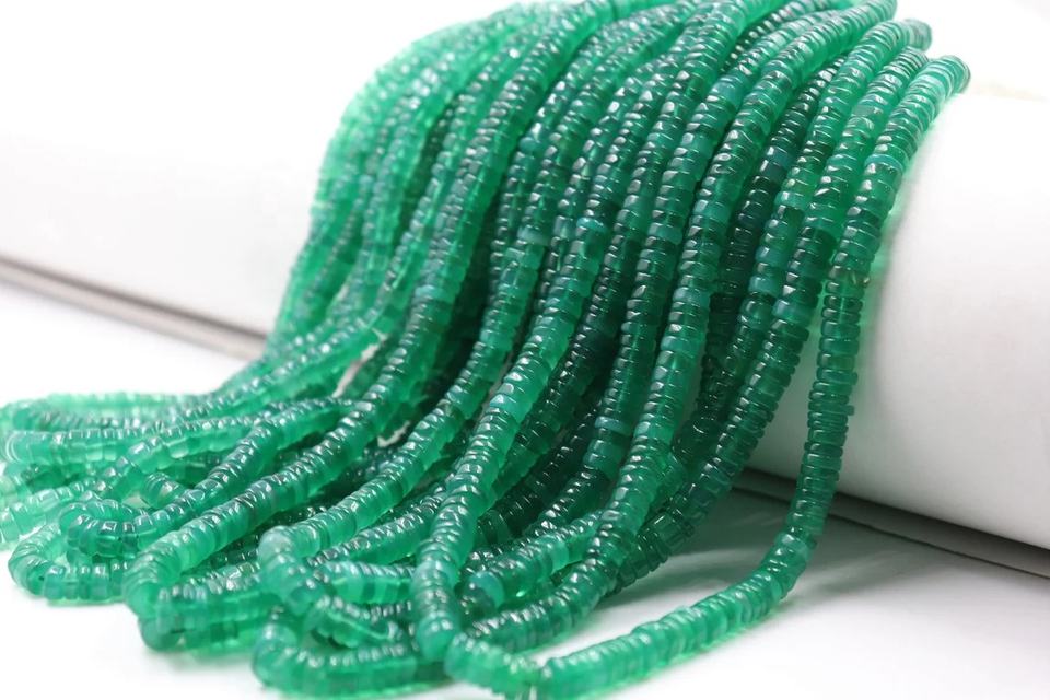 Green Onyx Wheel Shape Beads 6-6.5mm 16 Inches Smooth Tyre Heishi Stone Beads Green Onyx with Intricate Heishi Design