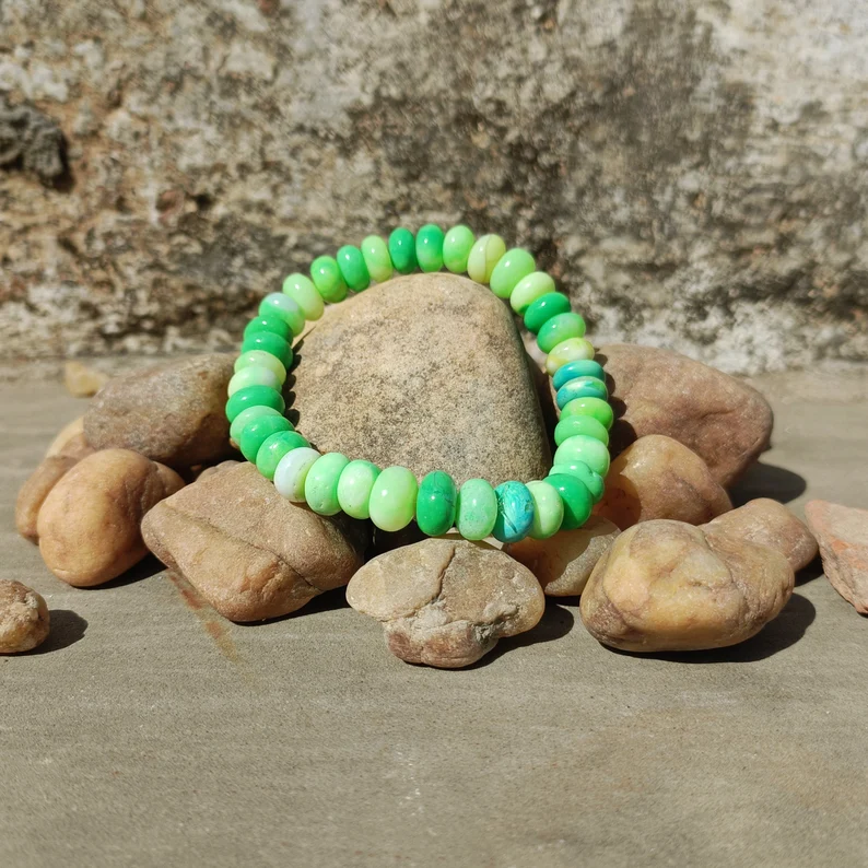 Green Opal Smooth Rondelle Beads Bracelet