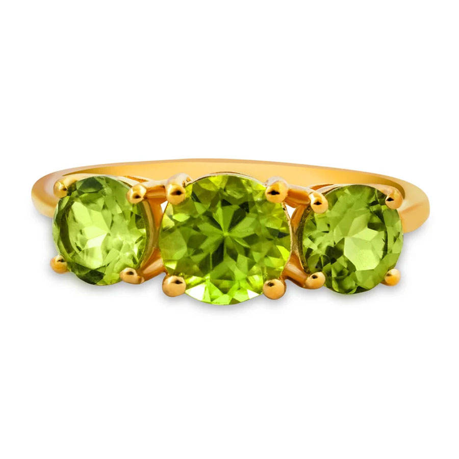 Green Peridot & Chrome Diopside Three Stone Ring Yellow Gold Plated Prong Set Gemstone Wedding Anniversary Jewelry for Women