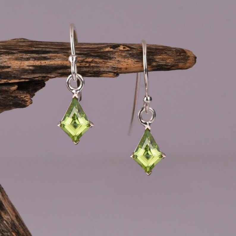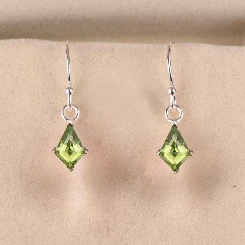 Green Peridot Kite Shaped Gold Plated 925 Sterling Silver Vintage Bridal August Birthstone Gemstone Earrings
