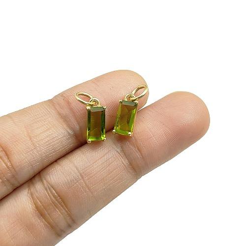 Green Peridot Quartz Baguette Cut Pendant Necklace Gold Vermeil August Birthstone Prong Setting Silver Charm Women Party Wear