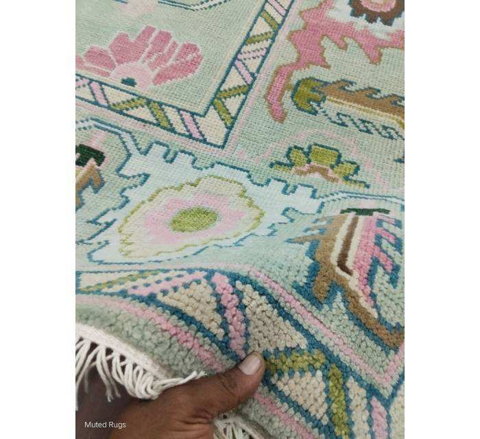 Green Persian Oushak Floral Cotton Carpet Runner Hand Knotted Living Room Area Door Carpet Set Non-Slip PET Friendly Foam