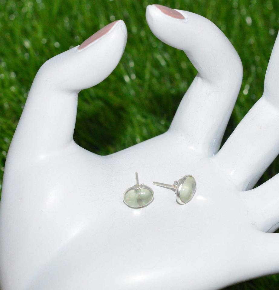 Green Prehnite 925 Sterling Silver Stud Earring Customized Fine Piercing Jewelry for Engagement Natural Gemstone for Vintage