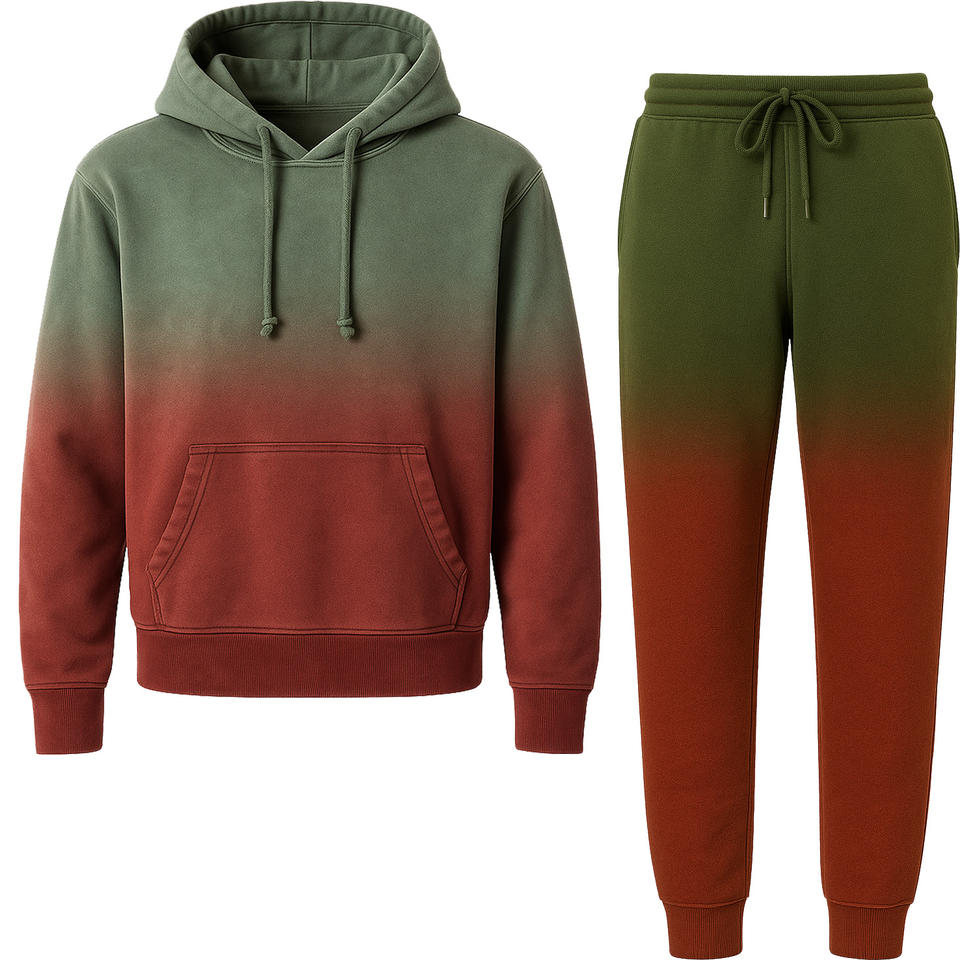 Green Red Fade Sun Faded Tracksuit Gradient Hoodie Jogger Set Lightweight Full Sleeve Acid Wash Tracksuits For Men