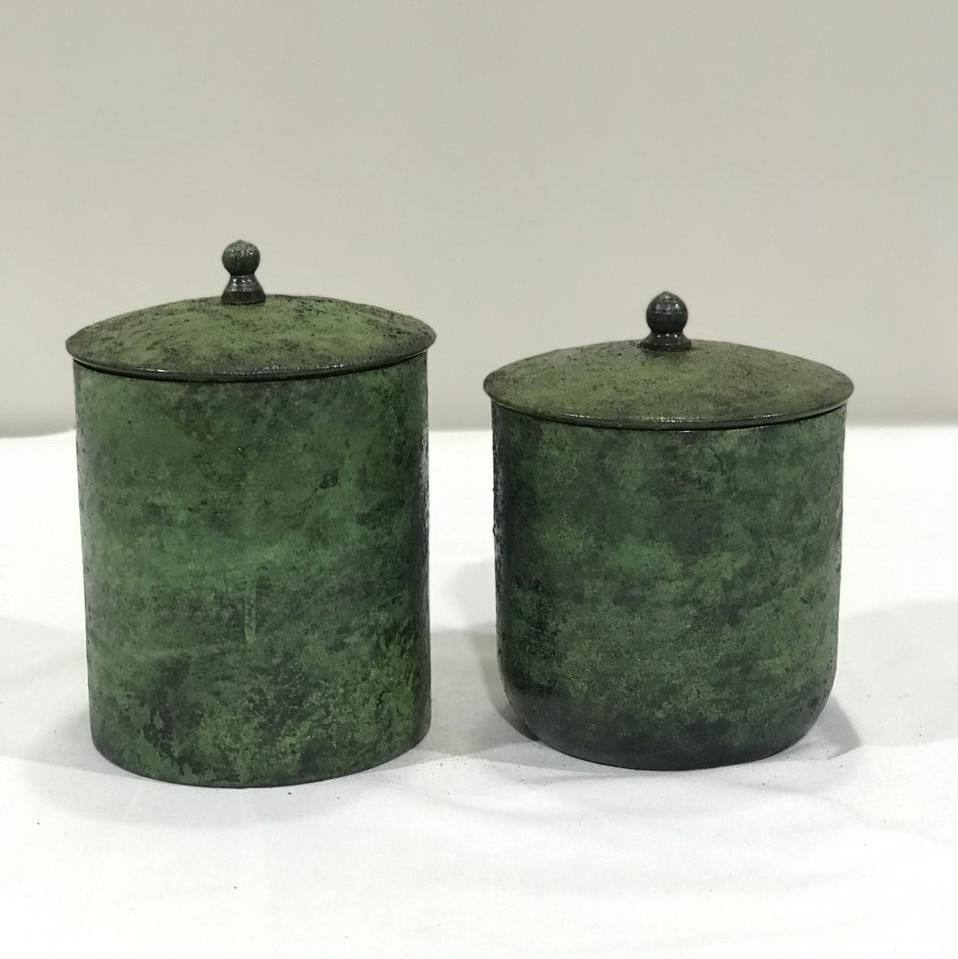 Green Rustic Metal Large Best Sales Candle Bowl With Metal Lid Hammered Design Table Top Decoration Candle Jar Bowl