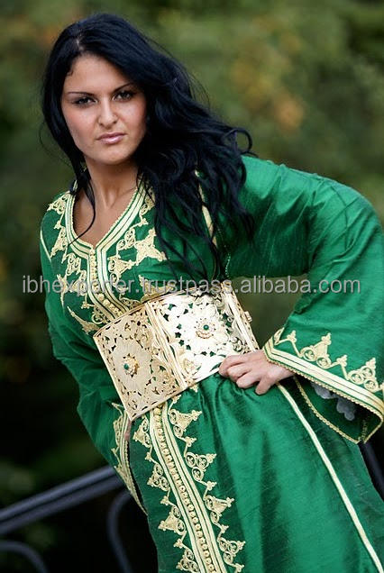 Green Silk Kaftan for Muslim Women With Embroidery and Stone Work Attractive Belt