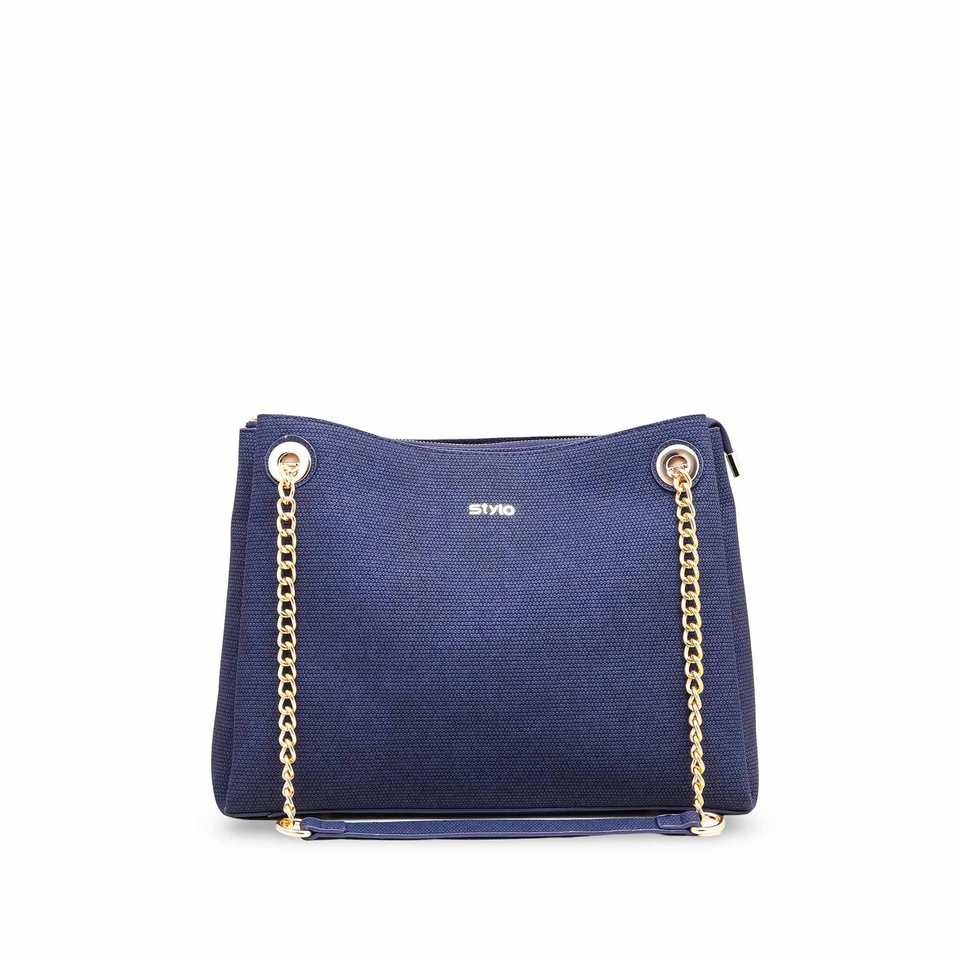 Elissa Single Compartment Magnetic Closure Denim Stone Embroidered Hand and Shoulder Bag Silver