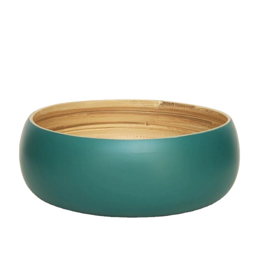 Green Spun Bamboo Dog Bowl Natural Eco-Friendly Disposable Pet Bowl Flatware Type Salad Bowl for Indoor Use