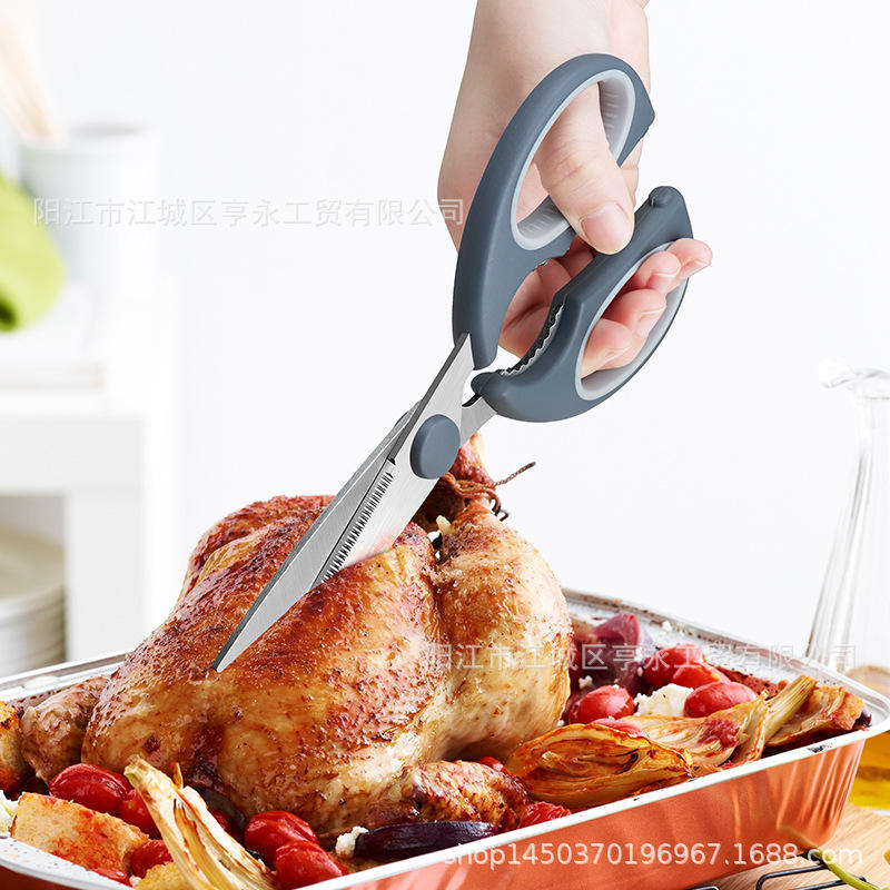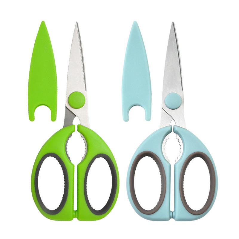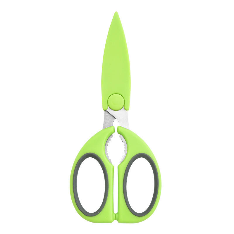 Green Stainless Steel Kitchen Scissors Heavy Duty Multi Functional For Meat Seafood Barbecue Cutting