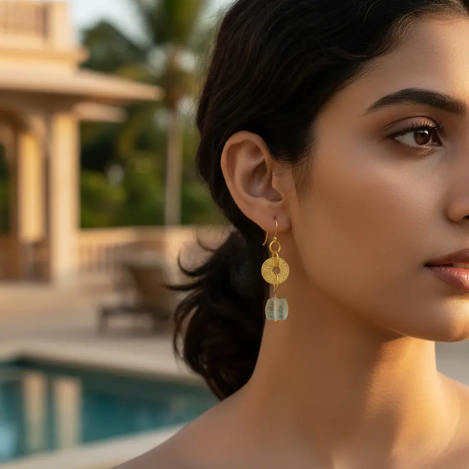Green Stone Dangle Earrings for Women Gold Plating Daily Wear Religious/Trendy/Classic Drop Party Mainly Made Copper/Brass