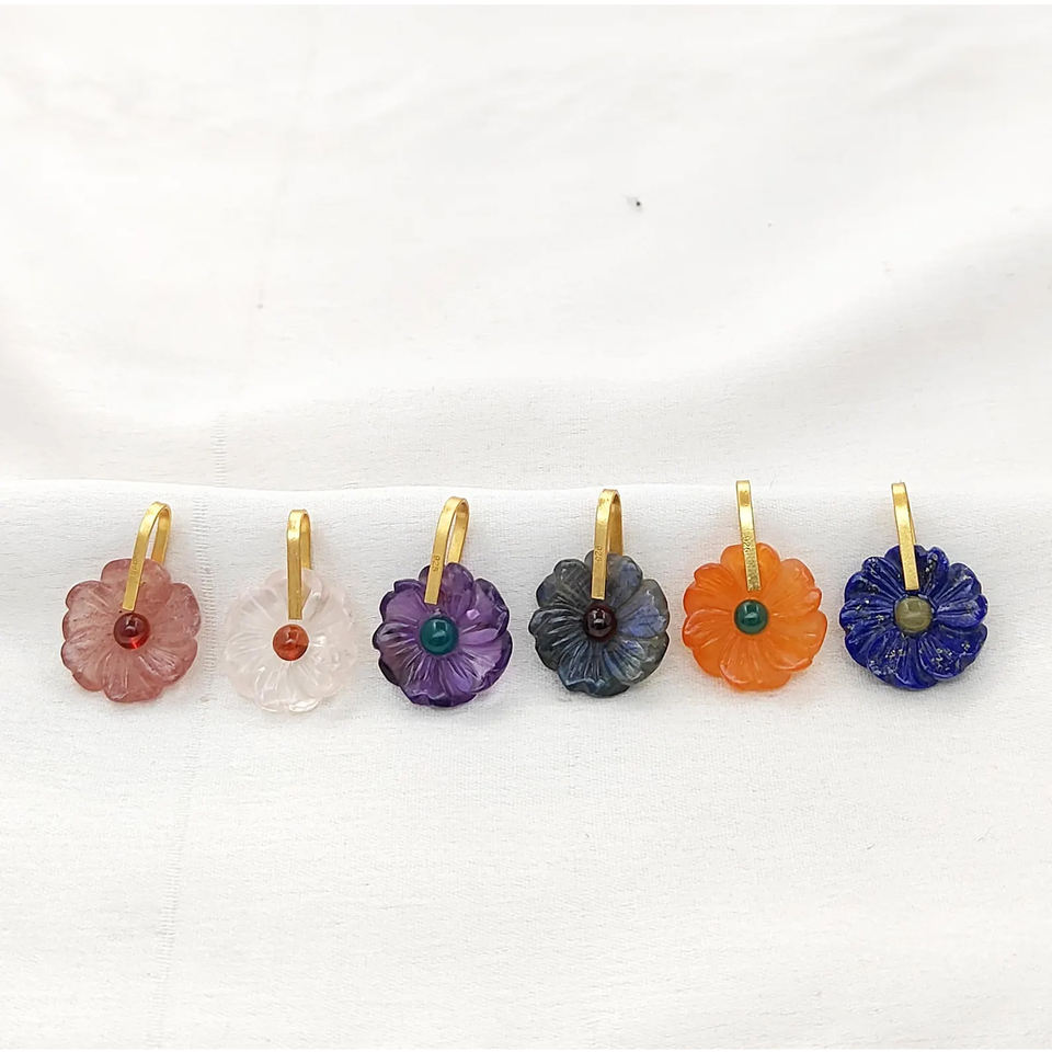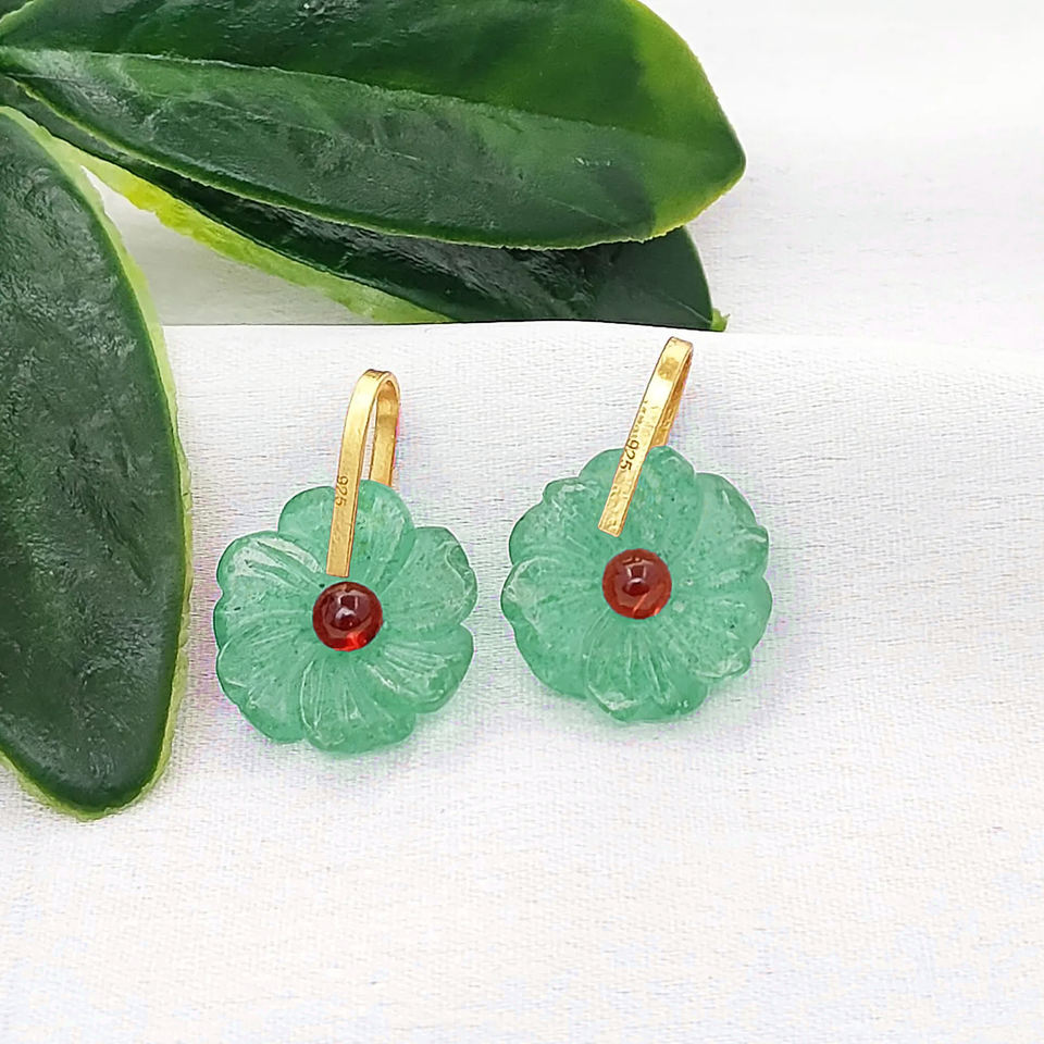 Green Strawberry Quartz Flower Carving Pendant Gold Plated 925 Silver Flower Charms With 3mm Central Stone Carved Fine Jewelry