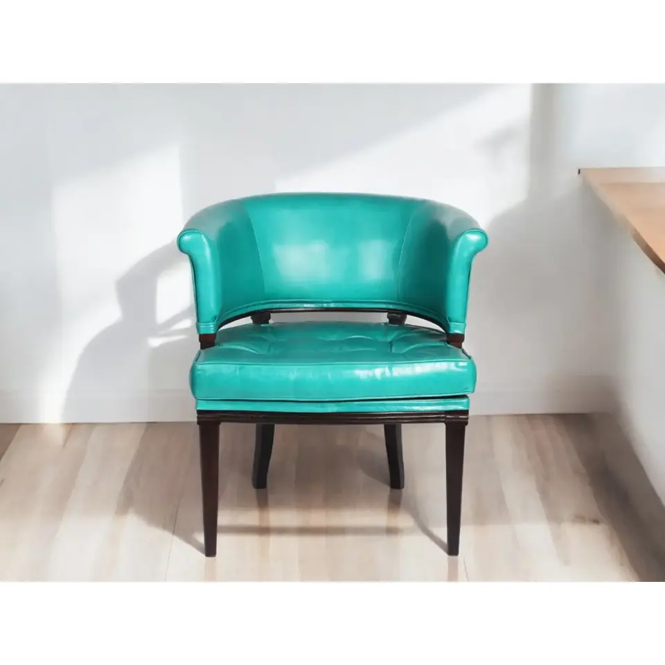 Green Synthetic Leather Wood Frame Accent Armchair Handmade Modern Scandinavian Design Tufted Feature for Home Office Furniture