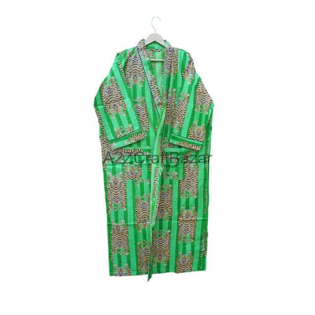 Green Tiger Women's Cotton Nightwear Beautiful Floral Long Kimono Shower Robe Breathable All Season Perfect Christmas Gift Front