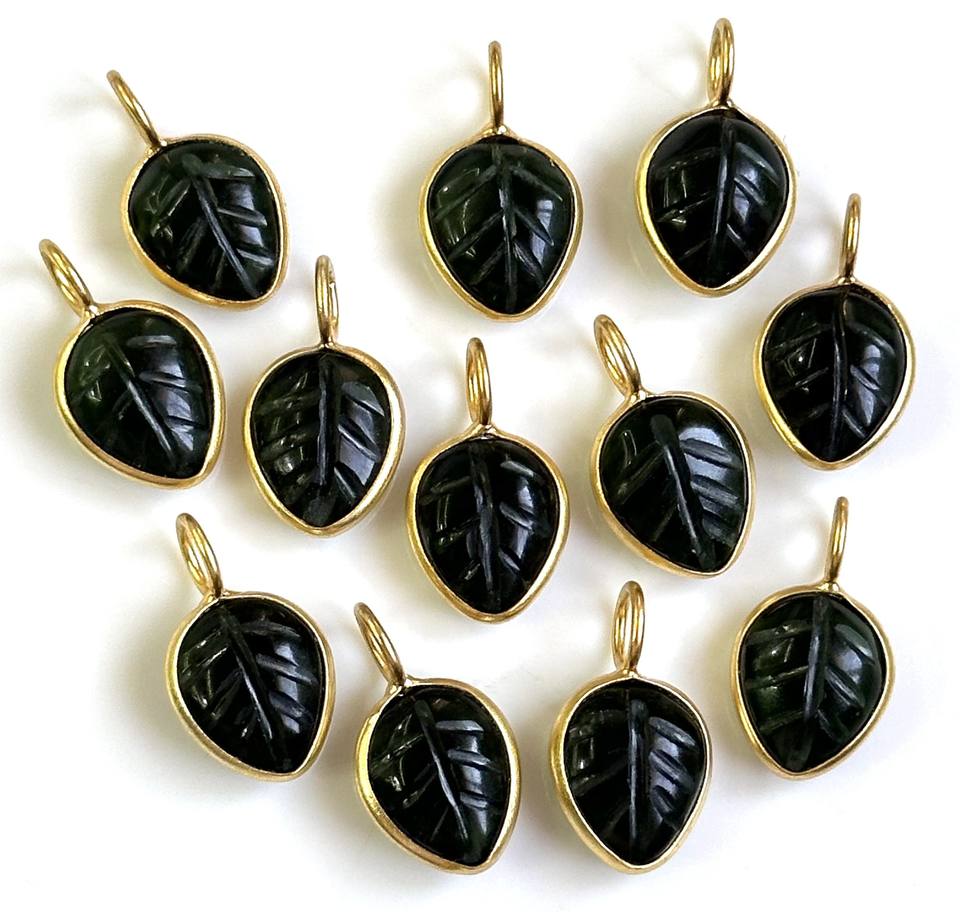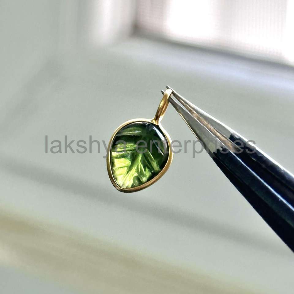 Product name:Green Tourmaline Quartz Carved Leaf Pendant Charms
