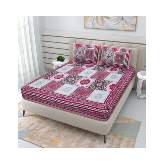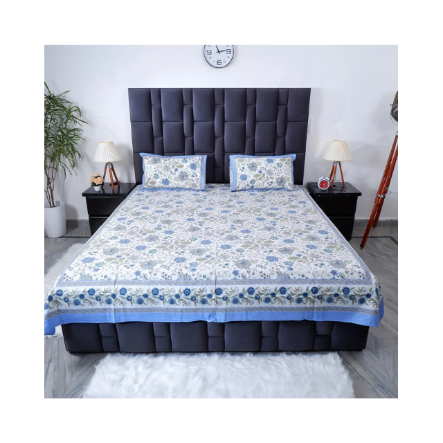Green Traditional Indian Origin Embroidered Queen Sheet 100% Cotton With Reactive Print Technique For Eco Friendly Export Orders