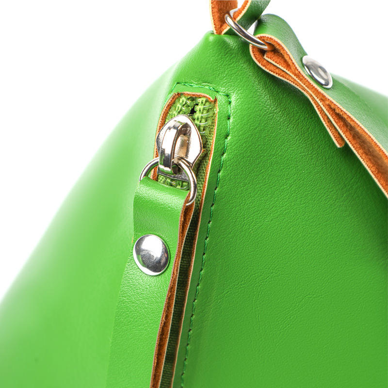 Green Triangular Coin Purse With Zipper Soft Handle Unisex Everyday Use 6 Inch Solid Color PU Storage Bag Key Pouch