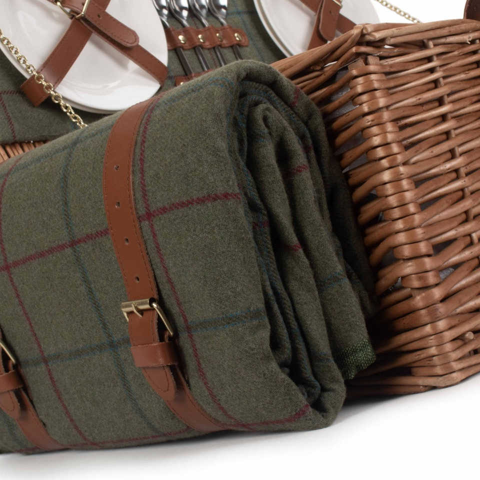 Green Tweed Fitted Wicker Picnic Basket Elegant Picnic Bags