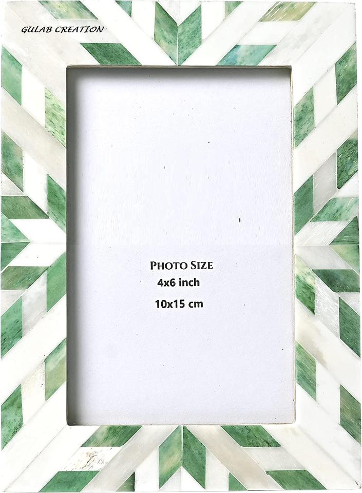 Green and White Bone Inlay Picture Frame with Geometric Pattern Handmade Decorative Photo Frame for Home and Office Decor