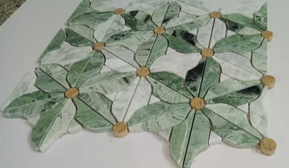 Green White Marble Lily Flower Stone Mosaic For Interior Kitchen Bathroom Toilet Flooring Wall Cladding Tile