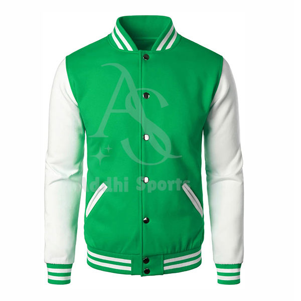 Green White Men 100% Wool Solid Front Varsity Baseball Jacket Letterman College Style Outerwear OEM Service