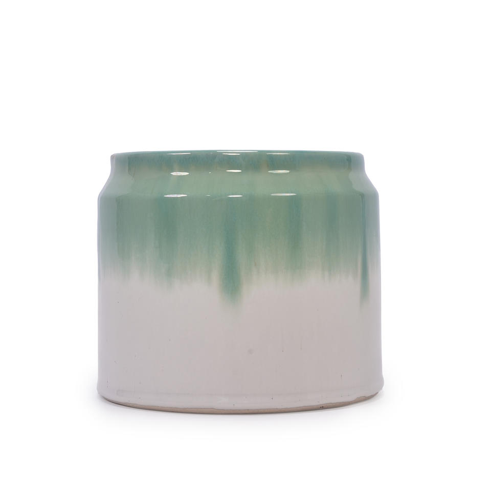 Green-White Ombre Glaze Handmade Ceramic Planter Set of 2 Ceramic Flower Planter Pot 8.5" & 6" Diameter