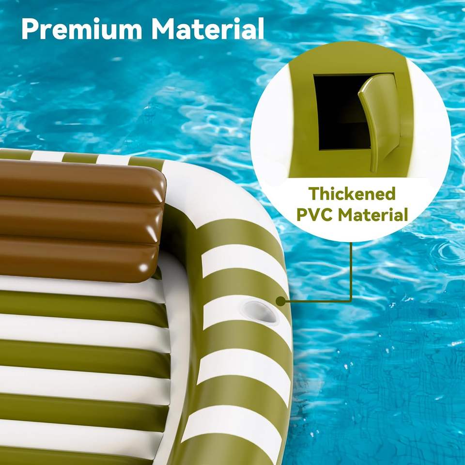Green White Stripe Inflatable Pool Lounger Float with Headrest and Cup Holder Oversized Adult Water Raft