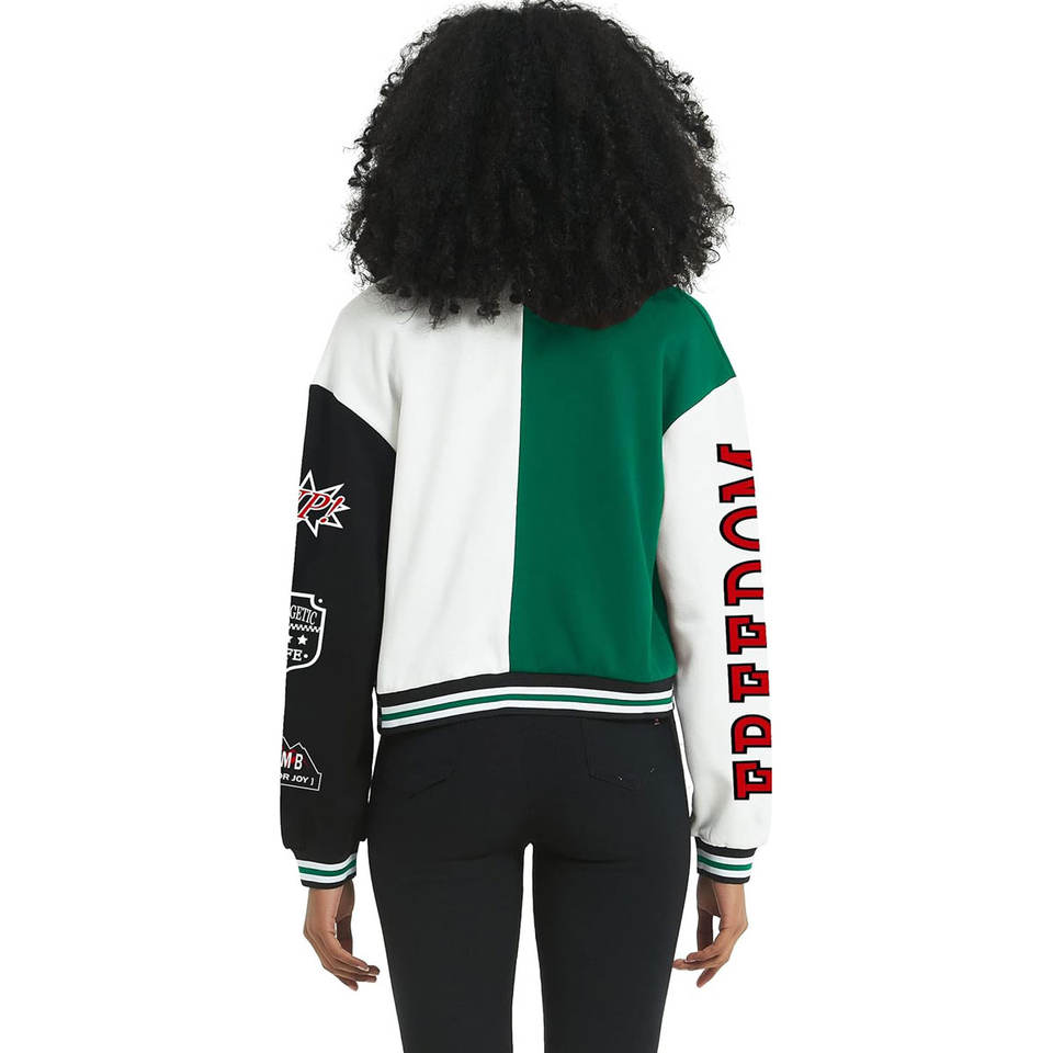 Green Women's Regular Varsity Jacket Color Block Letter Print Y2k Button Custom Embroidery Corduroy Sheep Skin Bomber Uniform
