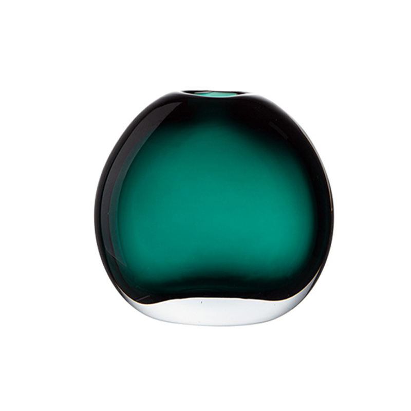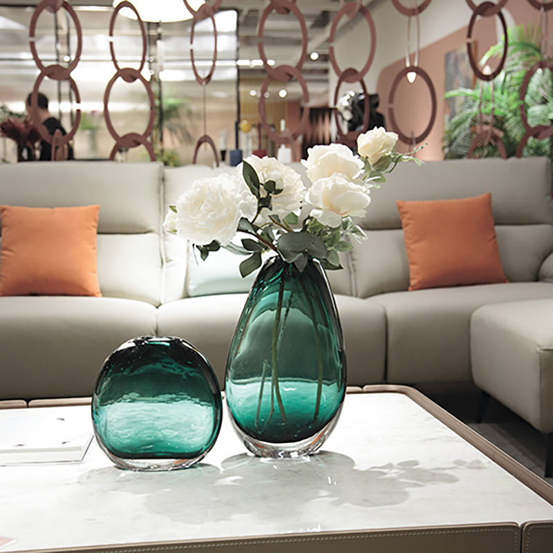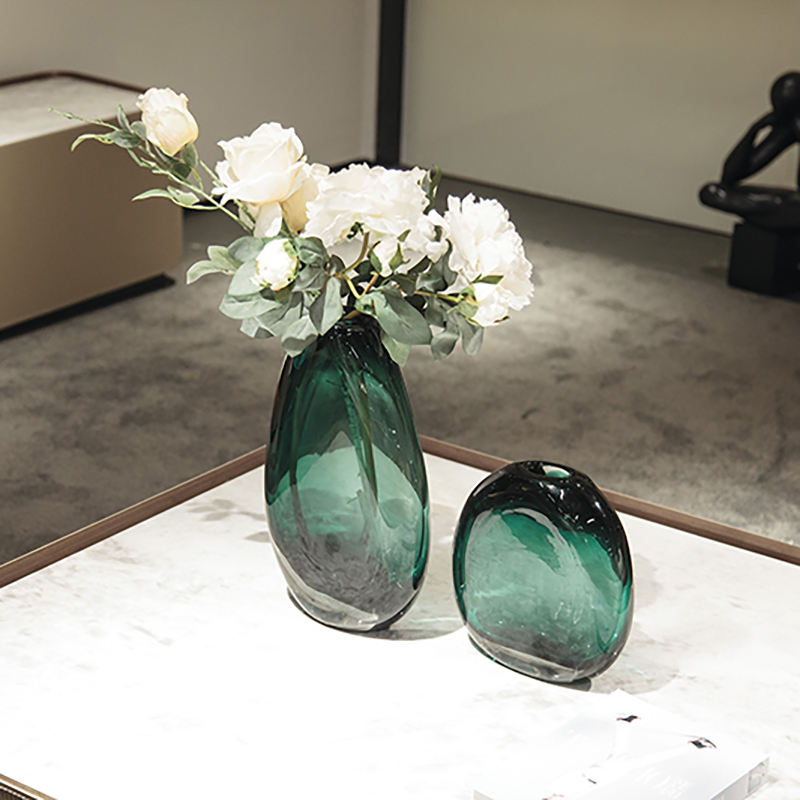 Green a Pair Big Small Handmade Tall Double Layer Ribbed Glass Vases for Home Decor