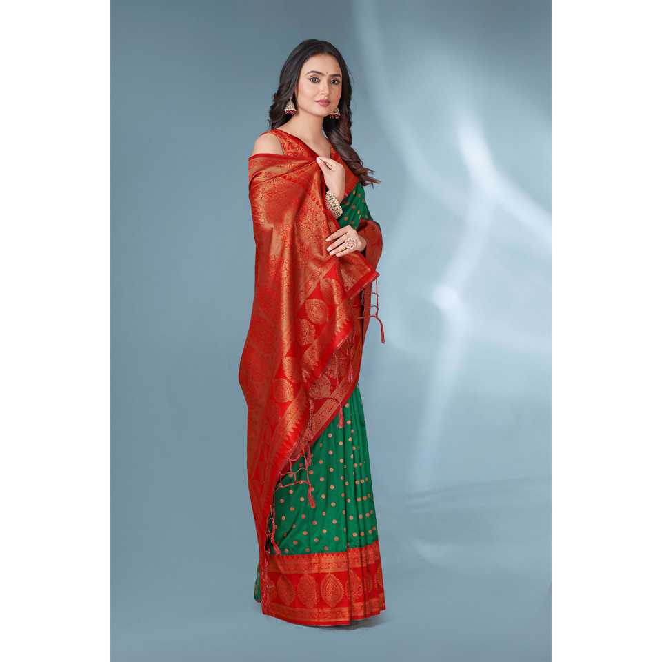 Green and Red Polka Dot Paithani Silk Saree with Unstitched Blouse Zari Woven Contrast Women's Blouses & Shirts