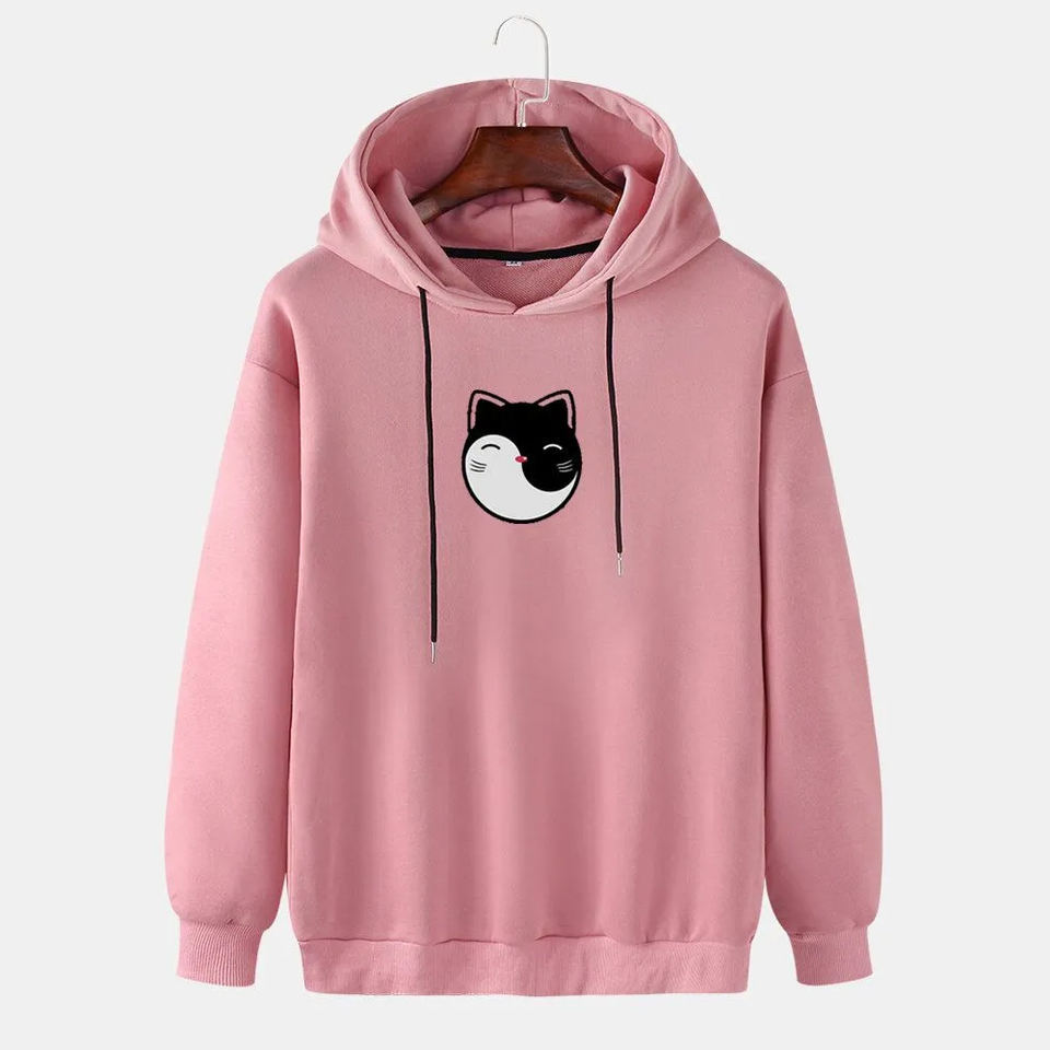 Green casual hoodie with cute cat face graphic soft warm pullover sweatshirt for everyday wear and comfortable layering