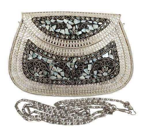 Green color handbag metal clutch gloosy look women formal handbag women fashion